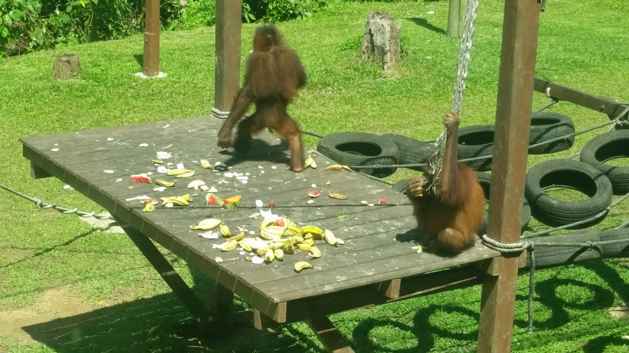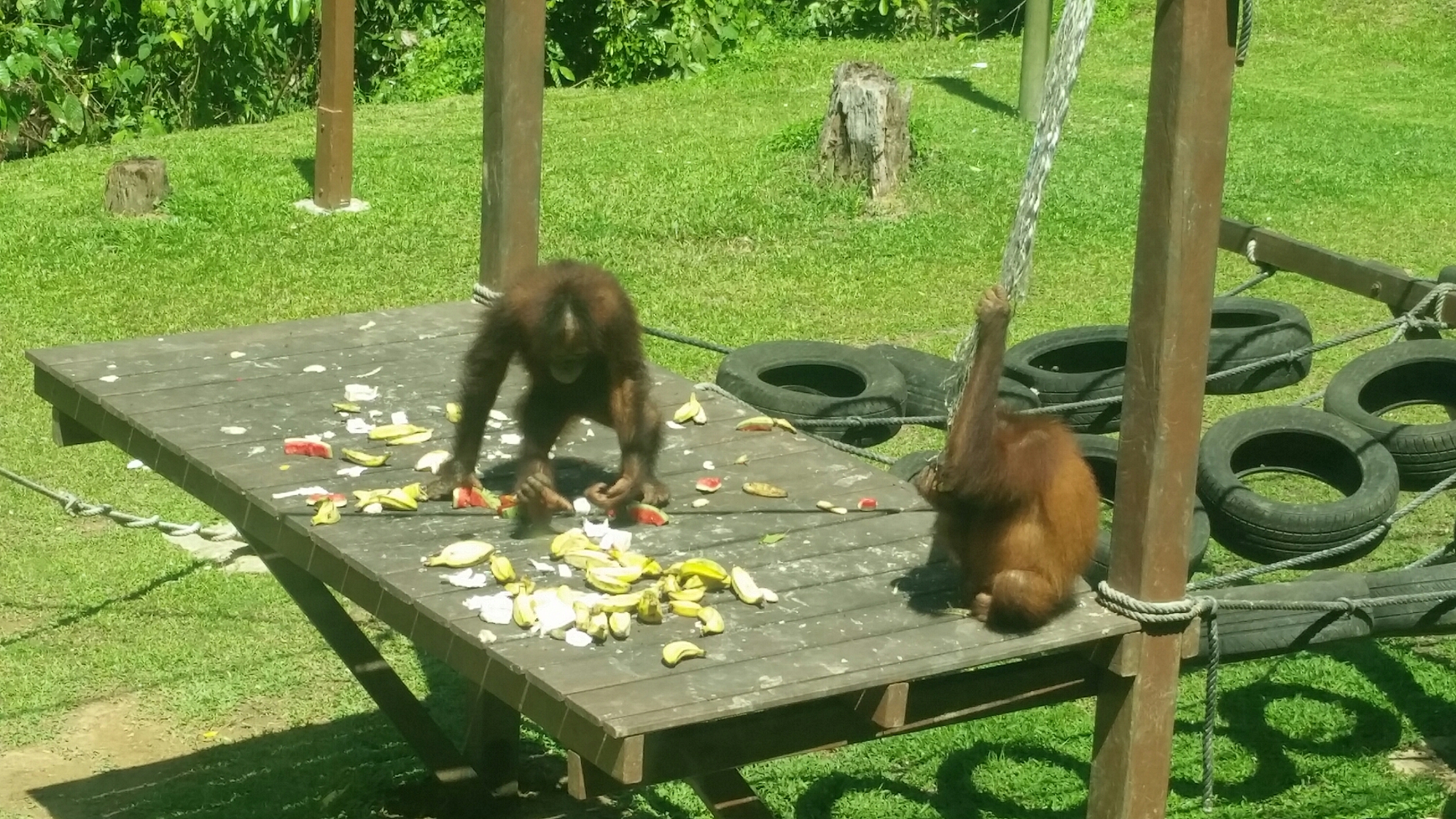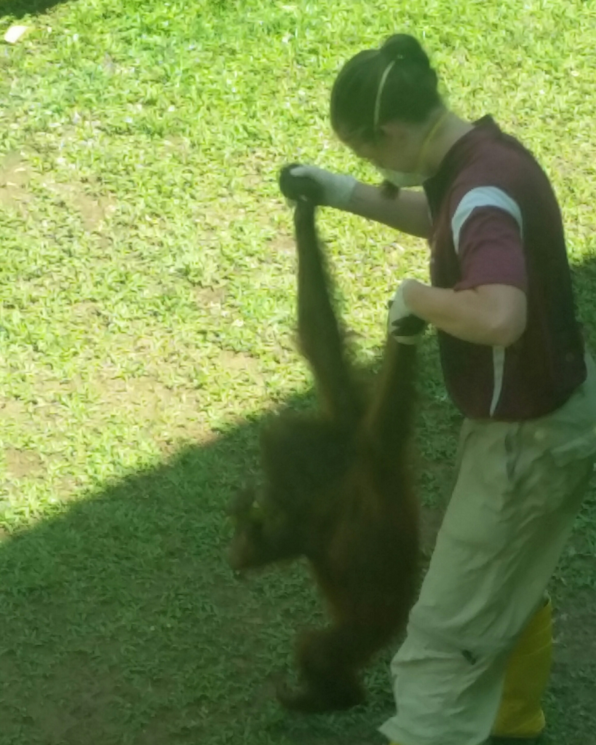 Chiquita is still as crazy as ever, swinging madly from rope to rope, her long fur blowing in the wind. She’s still up to her old tricks; getting on the floor whenever possible and then somersaulting back to the platforms and climbing back up as soon as we head over to take her to the naughty tree, attempted bites, racing up the side of the tourist building and allowing herself to be dragged rather than jalan-ing (walking).