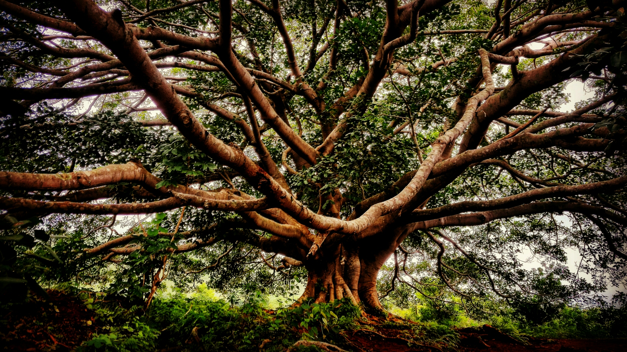 This is a Banyan Tree, sacred to Buddhists. It is said that after attaining enlightenment, Lord Buddha sat under a Banyan tree for seven days, absorbed in his new-found realization.