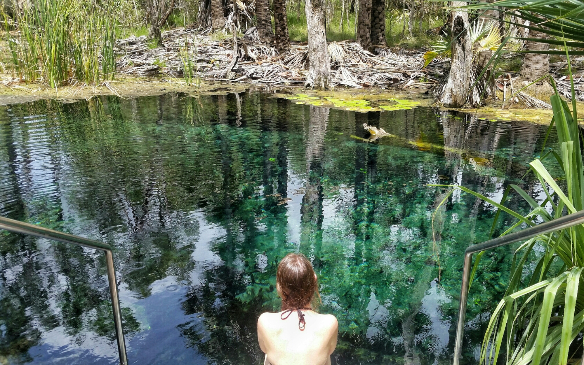 I had heard that in a town called Mataranka, there are naturally occurring hot springs. So we went and spent a couple of hours relaxing in the water and giving ourselves a well-earned break from the confinement of the car.